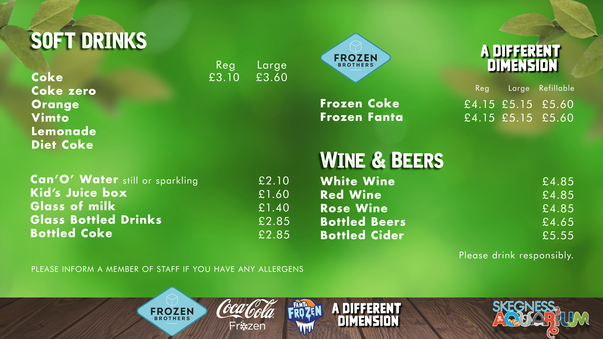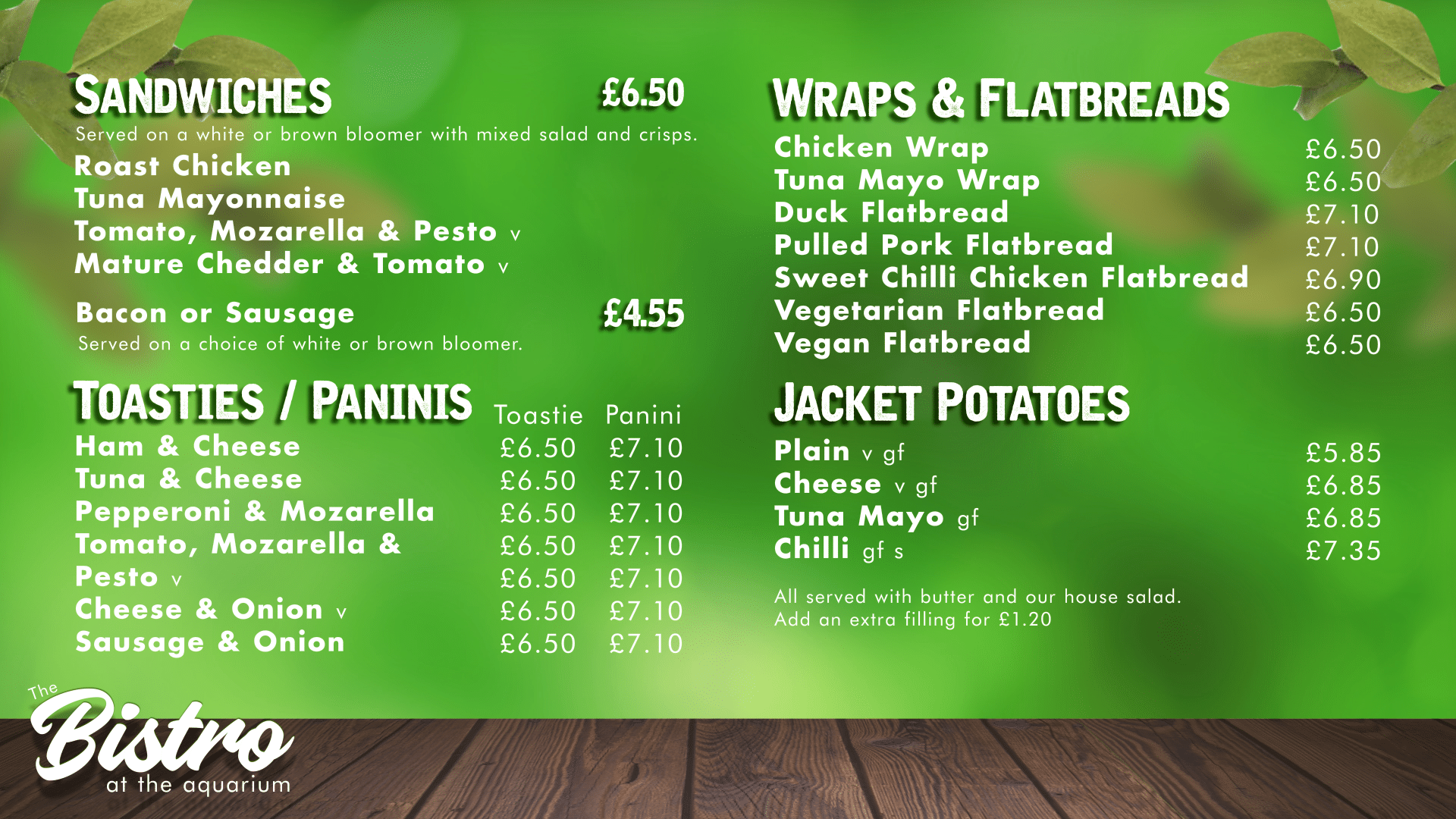 Take a look at our menus below to see what you can enjoy at the Skegness Aquarium Bistro.